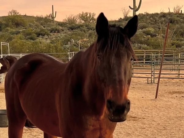 BIO: Dolly has been diagnosed with “Navicular Facets” (more information provided during potential adoption conversations). She is very sweet with people and other horses. She is a sight to see in person, very pretty and loving. She really needs a sweet home with some companions to live her life and be happy. She CANNOT be ridden with a bit or even a hackamore. She can be led on a lead line and a light rider. She was a show horse at one time and placed well in many events. She UTD on everything, loads, ties, bathes. IF she fits your needs and herd, we are happy to discuss further. All adoptions are very thorough and followed through for 6 months.